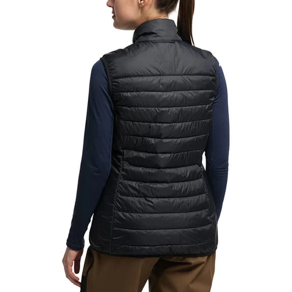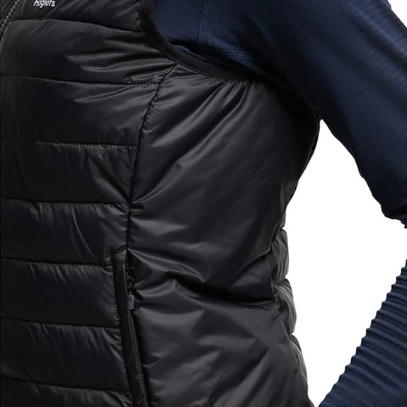 The Haglöfs Spire Mimic Gilet for women is filled with a superb synthetic material called Mimic Gold, which, as its name suggests, simulates the warming qualities of down, but also adds excellent performance in wet conditions. Strategically placed, unpadded areas allow for greater ease of movement and are fitted with insulating synthetic sheets to eliminate cold spots. The jacket also includes elastic fleece inserts under the arm and in the cuff, for greater elasticity and comfort. Made with Pertex outer fabric with DWR treatment.