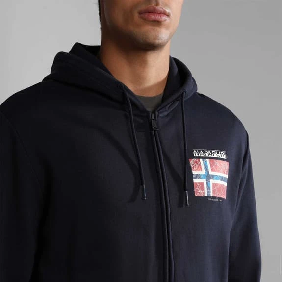 The Napapijri Guiro Full Zip Hoodie features the Norwegian flag and Napapijri Geographic logo across the chest in a nod to Norway’s beautiful landscapes and spirit of exploration, a place that has brought countless ideas to Napapijri. Finished with a full zip closure, side pockets for storing belongings and an adjustable hood, it’s an ideal top for those cooler spring and summer days.