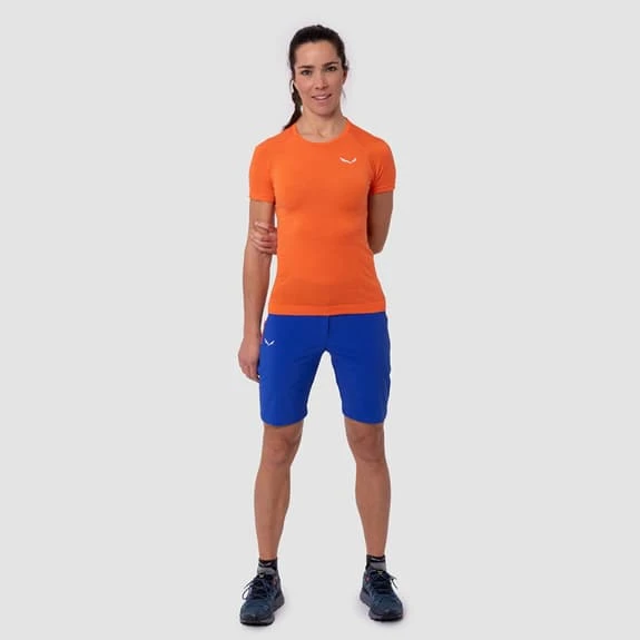 The Salewa Pedroc AMR short sleeve women’s T-shirt fits perfectly to the body thanks to its elastic fabric, increasing moisture absorption. The material is breathable and lightweight, which means the T-shirt dries quickly.