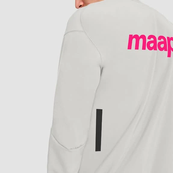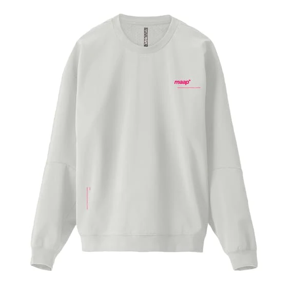 The MAAP Training Crew Long-Sleeve Sweatshirt is designed to be worn for relaxing after getting off the bike. Enjoy every day without compromising on the distinctive MAAP style with this soft stretch sweatshirt with long-lasting comfort. It has an inner fleece lining, so you don’t lose heat when the temperatures drop. It also features a water-repellent coating to help keep the elements at bay. Designed with a loose fit and drop shoulders for casual street style.